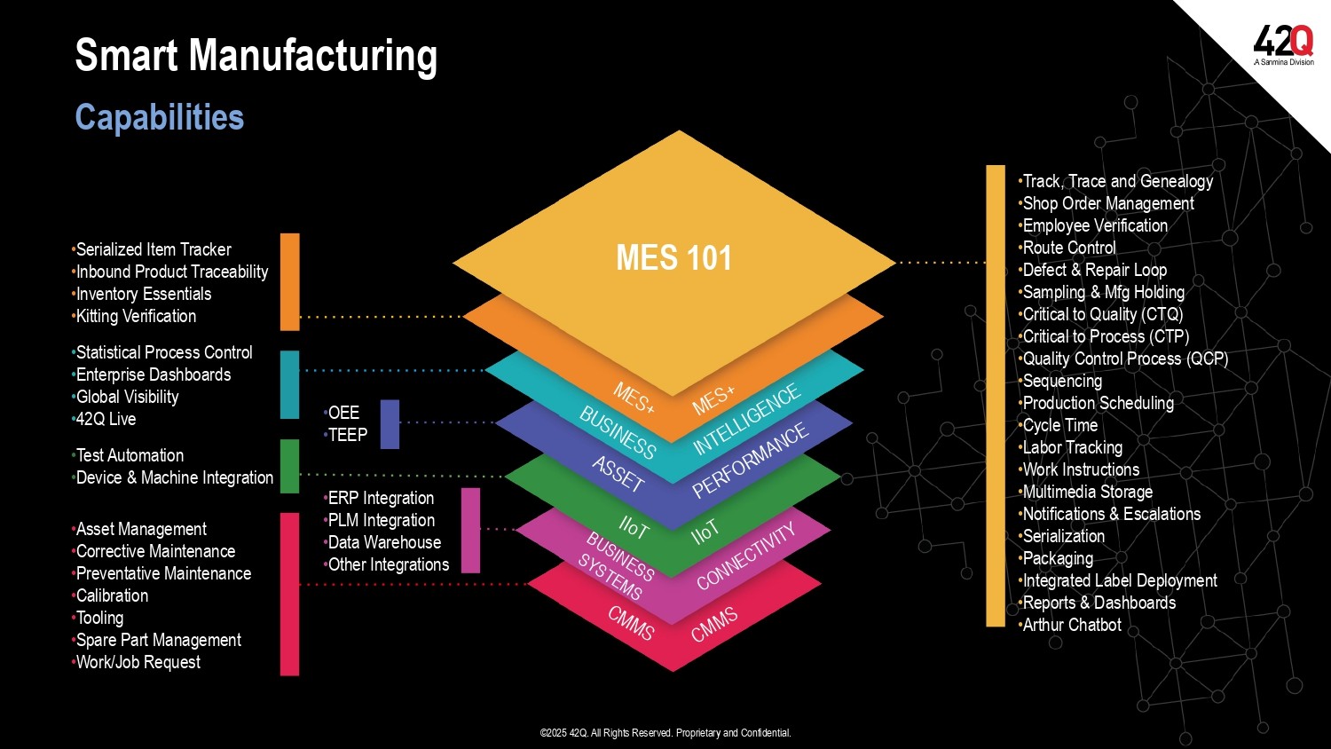 Where can discrete manufacturers go to find an MES/MOM solution developed by manufacturers with nearly a decade of production usage and experience as a multi-tenant cloud solution? 42Q, a wholly owned subsidiary of Sanmina Corporation, is an obvious choice. They provide: