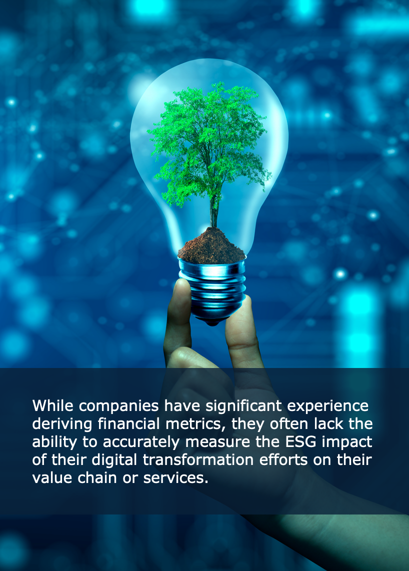 While companies have significant experience deriving financial metrics, they often lack the ability to accurately and holistically measure the ESG impact of their digital transformation efforts on their value chain. This research explores how to properly determine the value, and reviews case studies that show tangible sustainability impact based on a credible, scientific methodology.