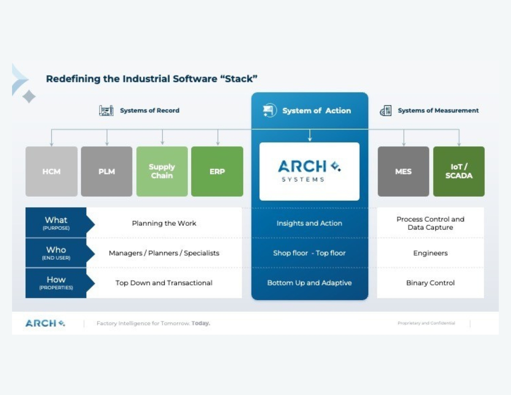 Arch Systems has achieved significant success in discrete manufacturing, including electronics, automotive, aerospace, defense, and medical technology. Because the expert data model or knowledge graph at the core of the software is based on modeling steps or batches, the company does not plan to serve continuous process industries.