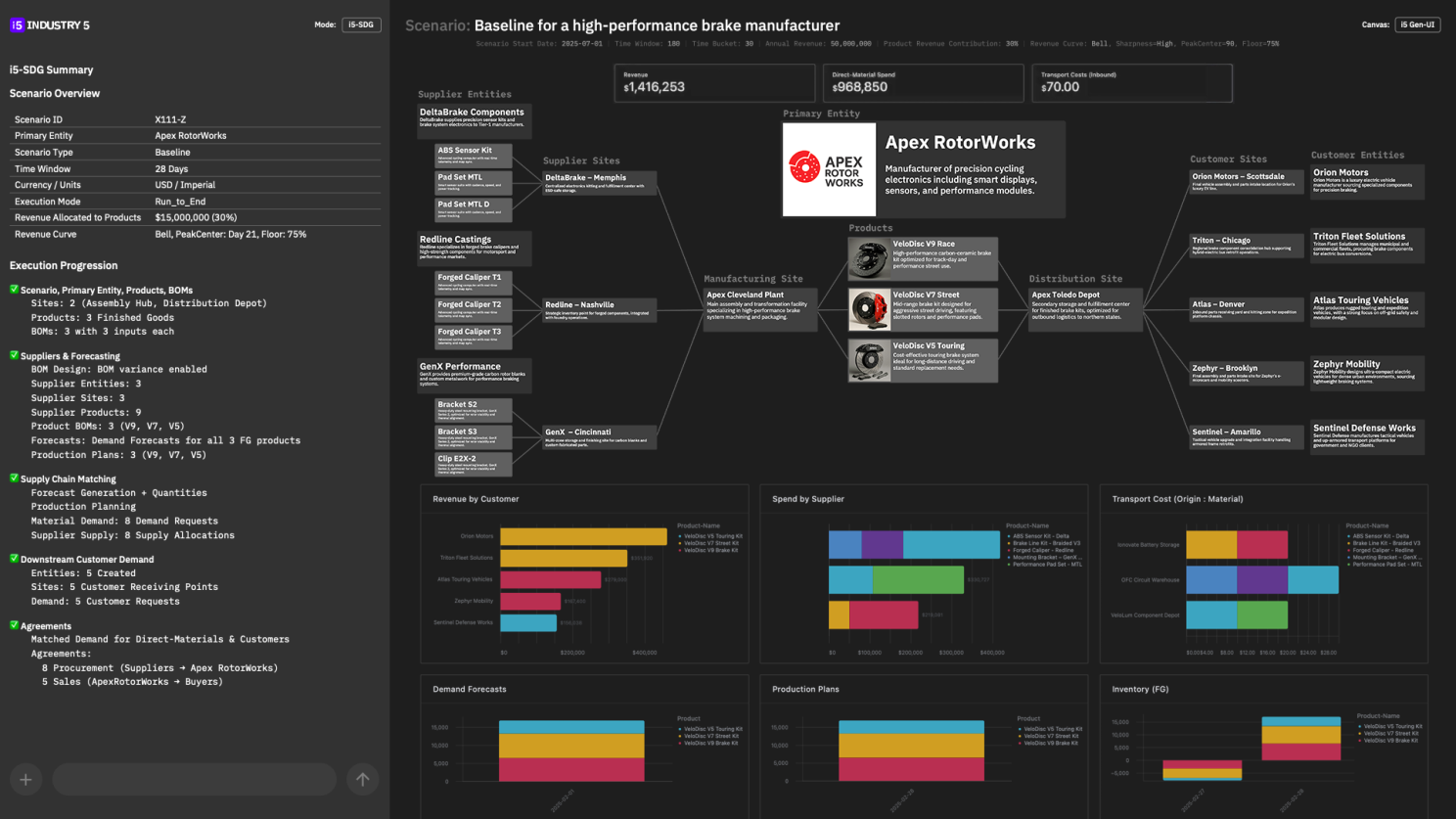 INDUSTRY 5 (i5) is a next-generation enterprise orchestration system that enables real-time, agent-based decision-making across supply chains and beyond. Rather than layering AI onto legacy tools, i5 reimagines the core logic of enterprise operations—using autonomous agents, embedded simulations, and dynamic negotiation graphs to continuously align decisions with changing conditions. It connects to existing systems (ERP, TMS, MES) without requiring data migration, offering a phased path from scenario testing to full orchestration. Designed by an enterprise veteran and operational today, i5 helps complex organizations move from reactive planning to adaptive execution—unlocking speed, resilience, and measurable ROI without disruption.