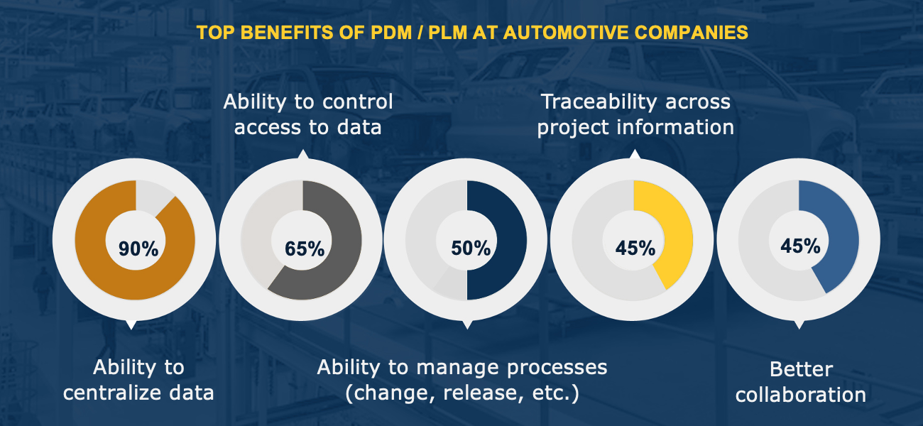 Engineers at automotive companies pointed to centralizing data as a top PLM benefit. Centralizing data makes it easier to find and allows them to effectively manage processes, such as engineering changes and release processes. They can also improve collaboration and traceability across projects.