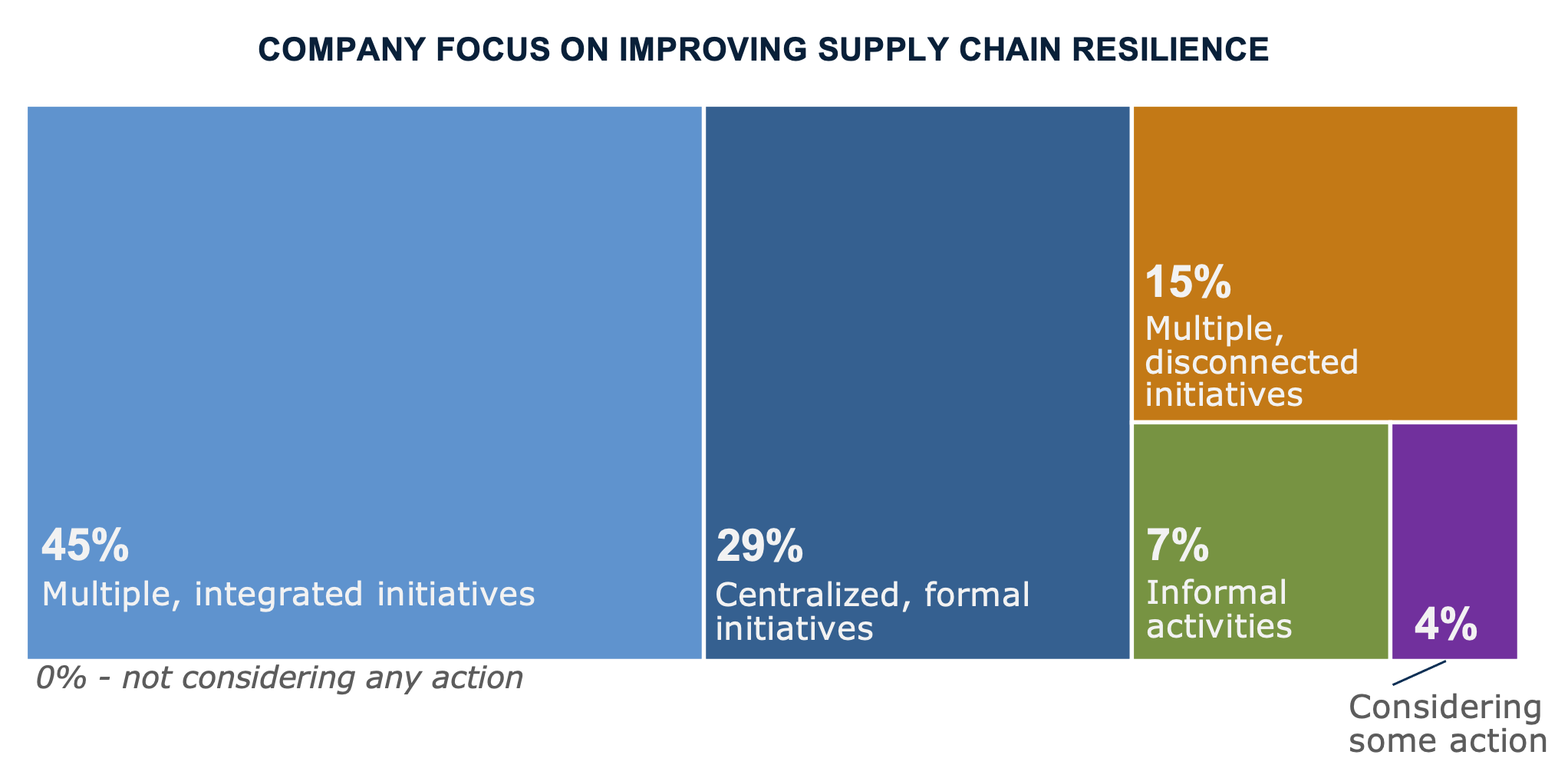 Goals without action are not impactful. The companies we surveyed report that they are taking action to improve their supply chain resilience and sovereignty. The survey shows that a full 96% of companies are taking action to improve their supply chains, and 89% have formal initiatives as opposed to ad-hoc activities.