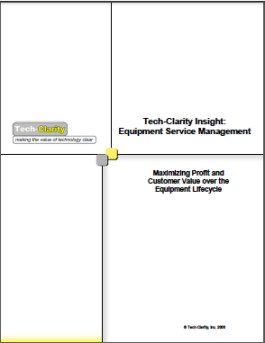 Tech-Clarity Insight: Equipment Service Management: Maximizing Profit and Customer Value over the Equipment Lifecycle explains that there are two fundamentals that service organizations must master to rise above the competition – operational control of service operations and equipment intelligence. The paper also introduces an Equipment Service Management Framework that companies can use to benchmark their service processes and technology against a world class approach.
