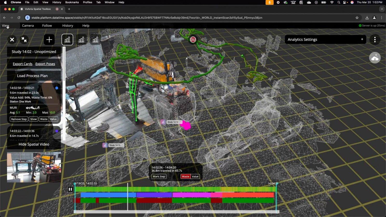 Another challenge with CI data collection and analysis is bias. Using the Data Time Space system quickly alleviates any concern about that, as everyone sees exactly what happened in the recorded data. The demo is compelling, showing it tracking movement for ergonomics and trace or spaghetti maps for movement and waste reduction.