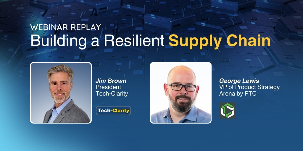 How can manufacturers develop a resilient supply chain through better collaboration? Watch the Resilient Supply Chain Playbook webinar to hear a research-centered conversation between our Jim Brown and PTC’s VP of Product Strategy for Arena George Lewis. Learn about: