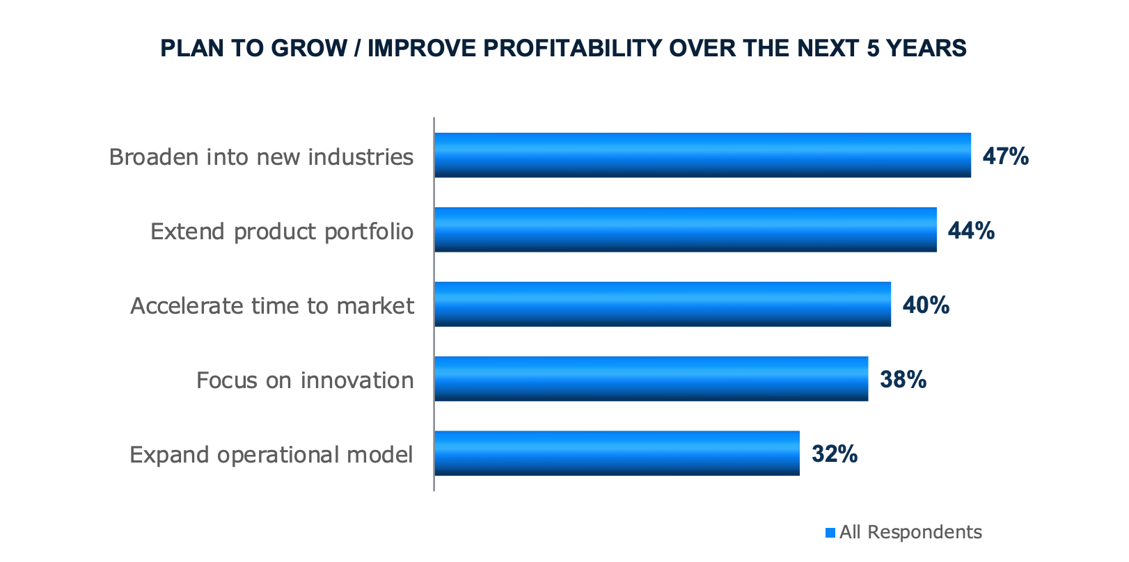 With the expected growth in the semiconductor industry, semiconductor companies must strategize to determine the best ways to tap into these opportunities and profitably grow. Over the next five years, they plan to grow by broadening into new industries, extending their portfolios, and accelerating their time to market (see graph).