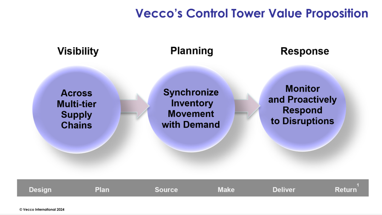 Our latest executive survey indicates that supply chain resilience is a top concern. Constant changes in regulations, supplier stability, tariffs, weather, and more regularly impact supply and demand and are not in a company’s control. Thus, gaining more visibility and agility to respond to changes in an orchestrated way is crucial. Vecco’s comprehensive approach can deliver this internally and with multiple tiers of suppliers and supply chain partners.